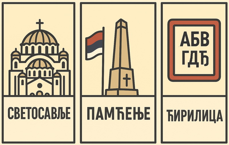Србство чине тј. држе три стуба: Светосавље, Памћење и Ћирилица.